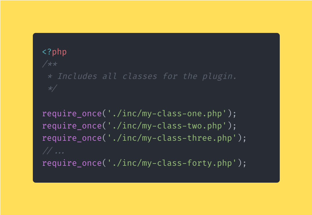 Example of including every class file manually