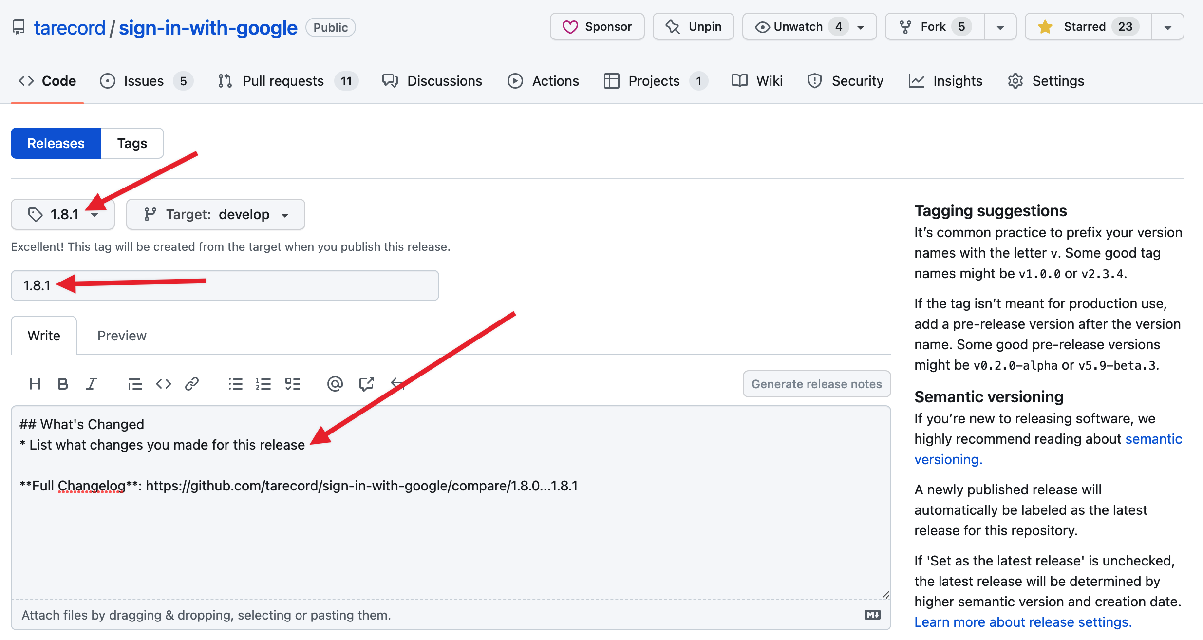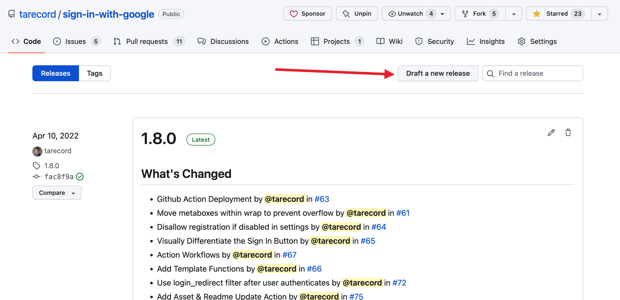 Now that your action is set up, update the version number in your plugin’s header and create a new release in Github: