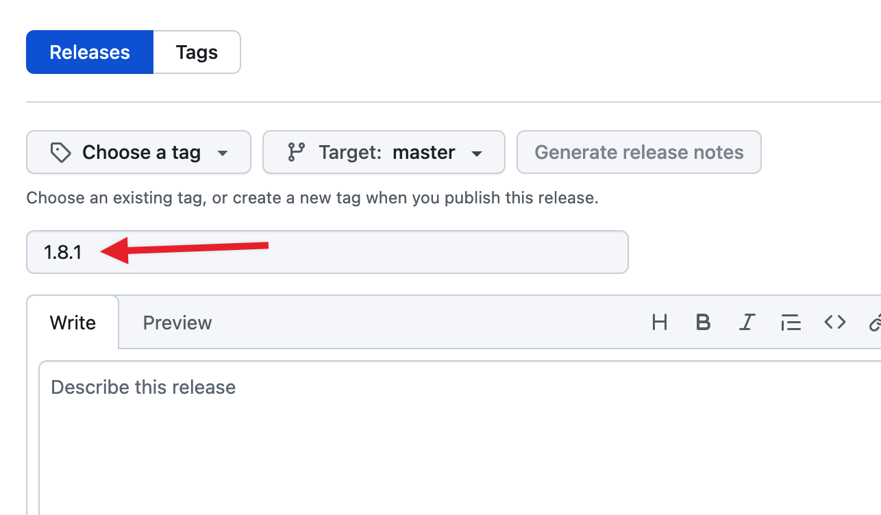Once you’ve set up the tag and the title, now you can start describing the release in the body section.