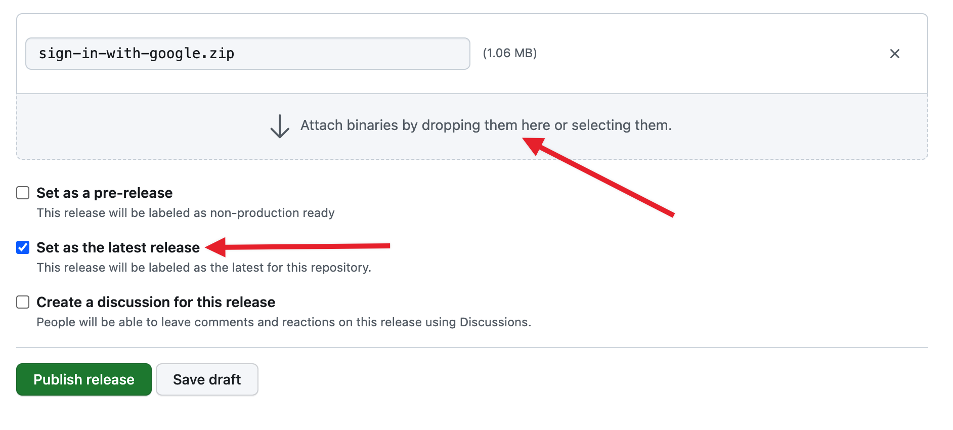 Finally, when you have finished writing your release notes, drop in your compiled plugin zip for the release (this should be your production ready build for the version you’re releasing).